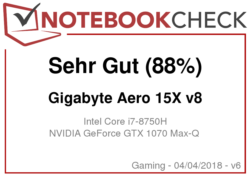 Test Gigabyte Aero 15X v8 (i7-8750H, GTX 1070 Max-Q, Full-HD) Laptop