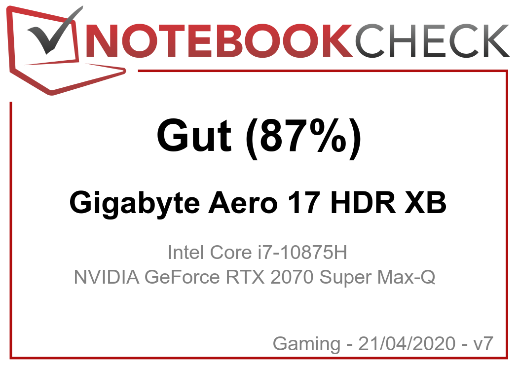Test Gigabyte Aero 17 HDR XB Laptop: Super-Max-Q am Start