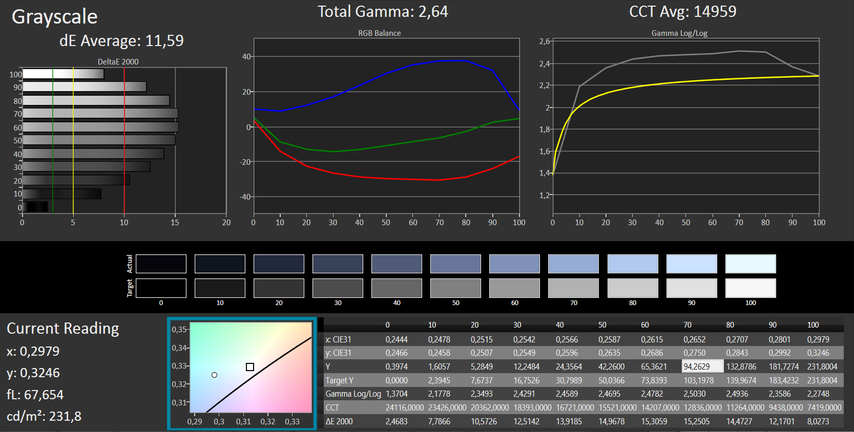 ΔE Greyscale Calman: 11.59 | ∀{0.09-98 Ø5}