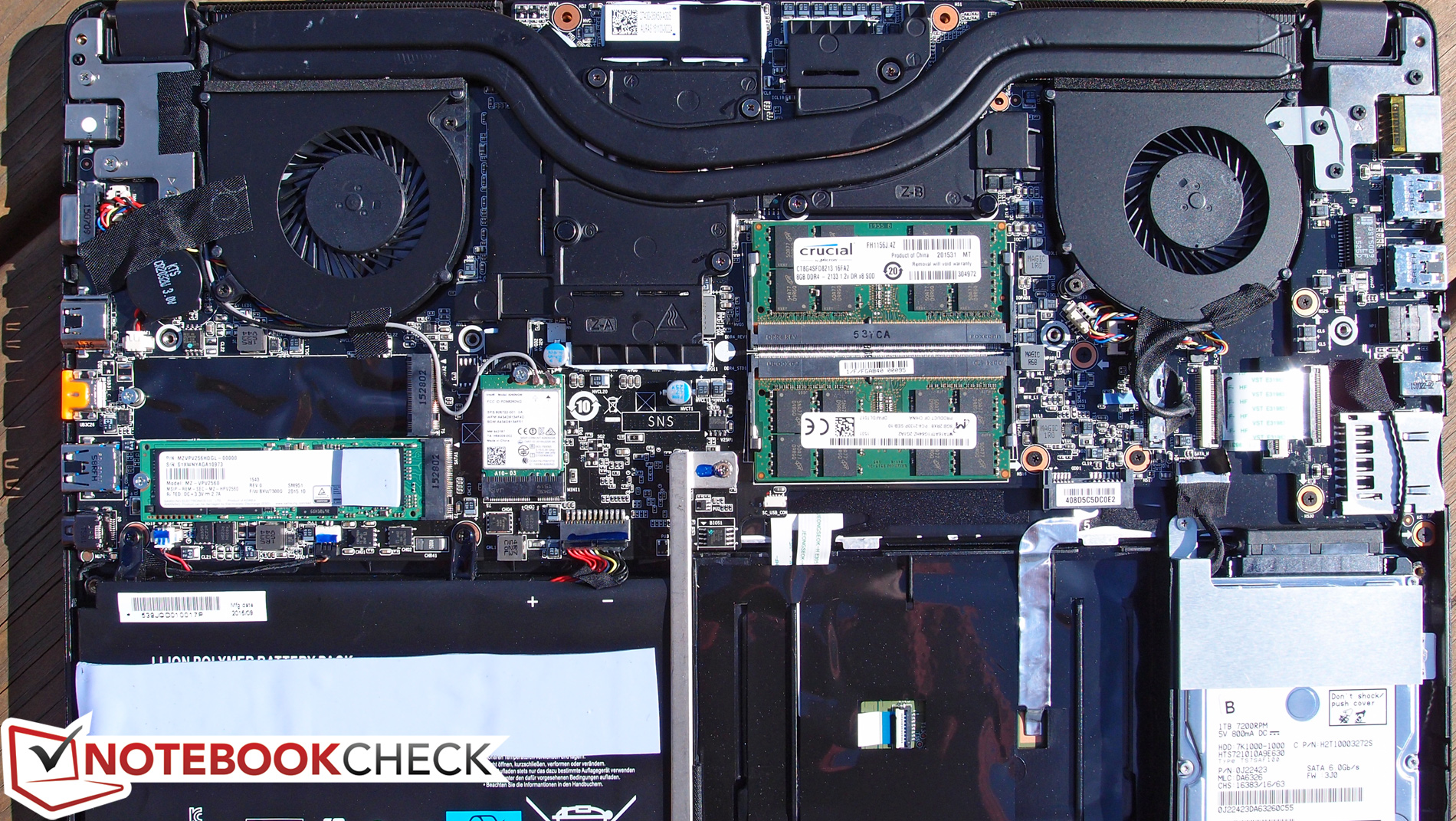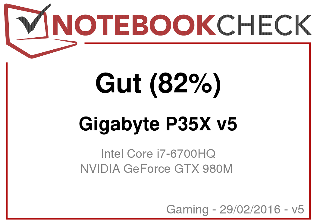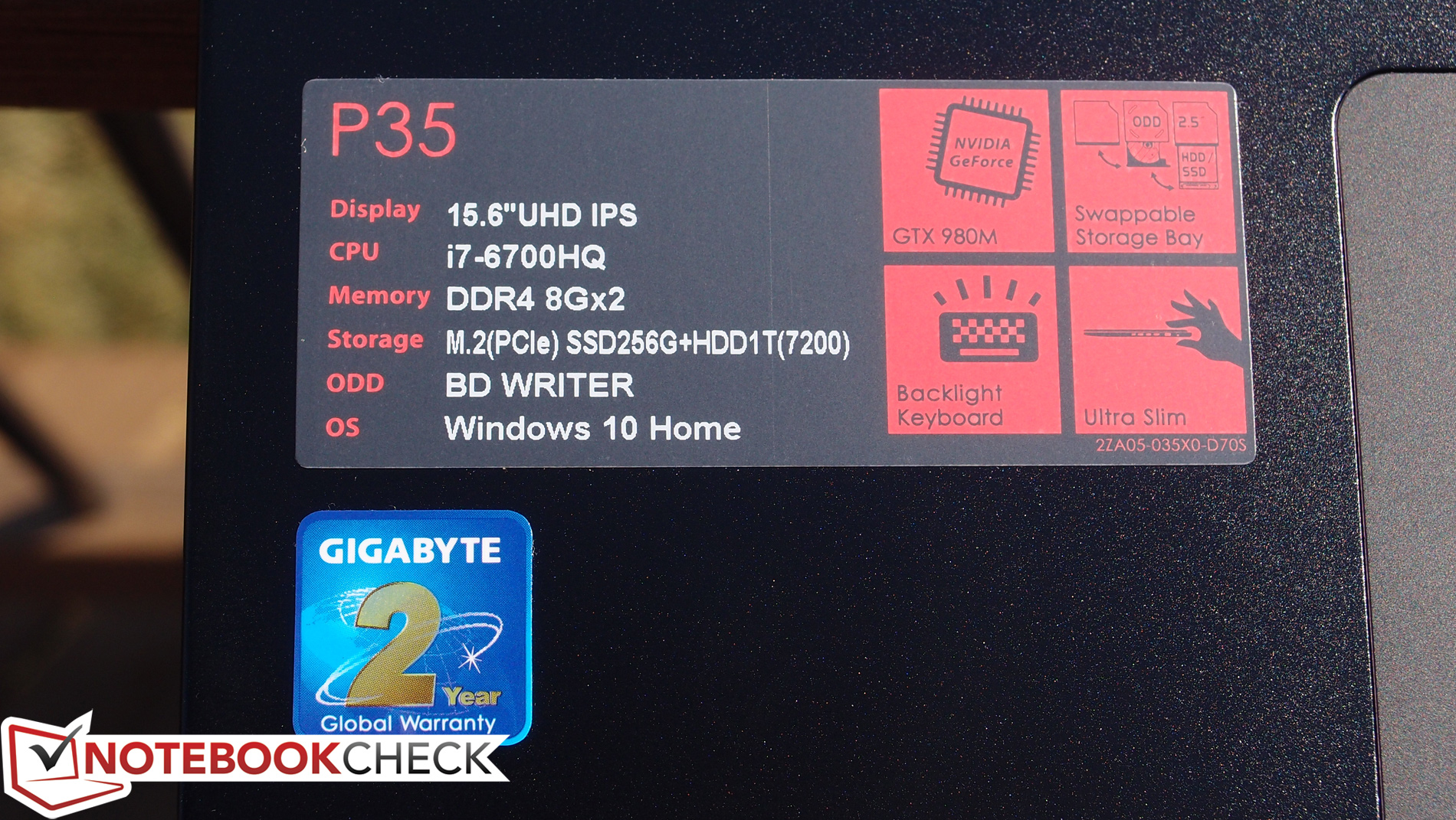 Alle aktuellen Gigabyte P35X v5 Konfigurationen werden mit der gleichen CPU und GPU ausgeliefert: der Intel Core i7-6700HQ und Nvidia GeForce GTX 980M, zu welchen wir in den nächsten Abschnitten kommen werden. Davon abgesehen beschränken sich die leistungstragenden Optionen nur auf RAM und Massenspeicher. Vorinstallierte RAM-Konfigurationen bestehen entweder aus 8 GB oder 16 GB DDR4-2133, obwohl bis zu 32 GB unterstützt werden. Der Massenspeicher kann entweder nur ein einziges mechanisches Laufwerk (1 TB 7200 RPM) oder eine Kombination mit einer 256 GB M.2 PCIe SSD als primäres Systemlaufwerk sein. Letzteres verbessert die Reaktionsfreudigkeit des Gesamtsystems und die Anwendungsleistung natürlich stark,doch der Einfluss auf die Gaming-Leistung ist minimal.