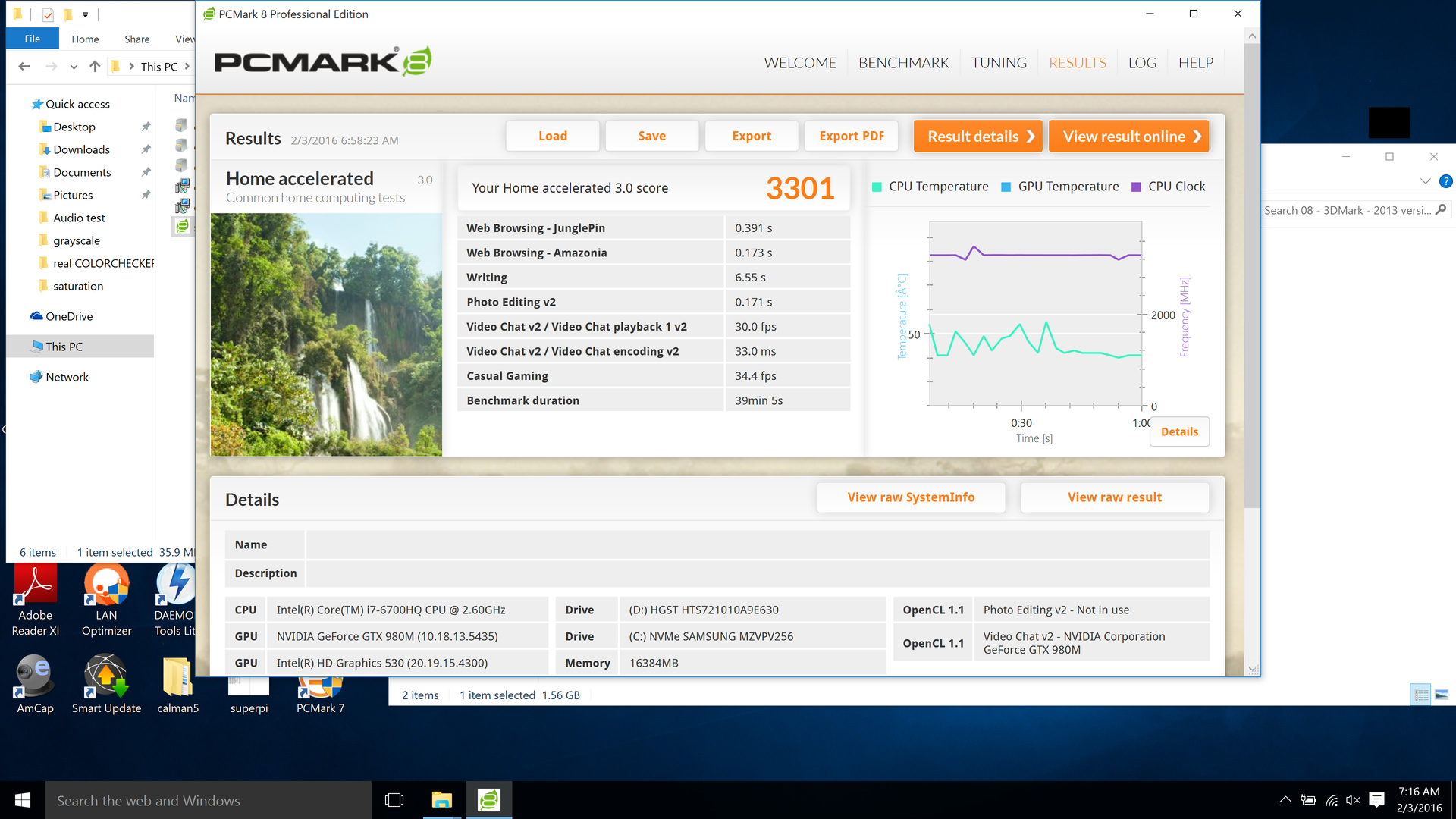 | PCMark 8 Home Score Accelerated v2 | 3301 Punkte | |