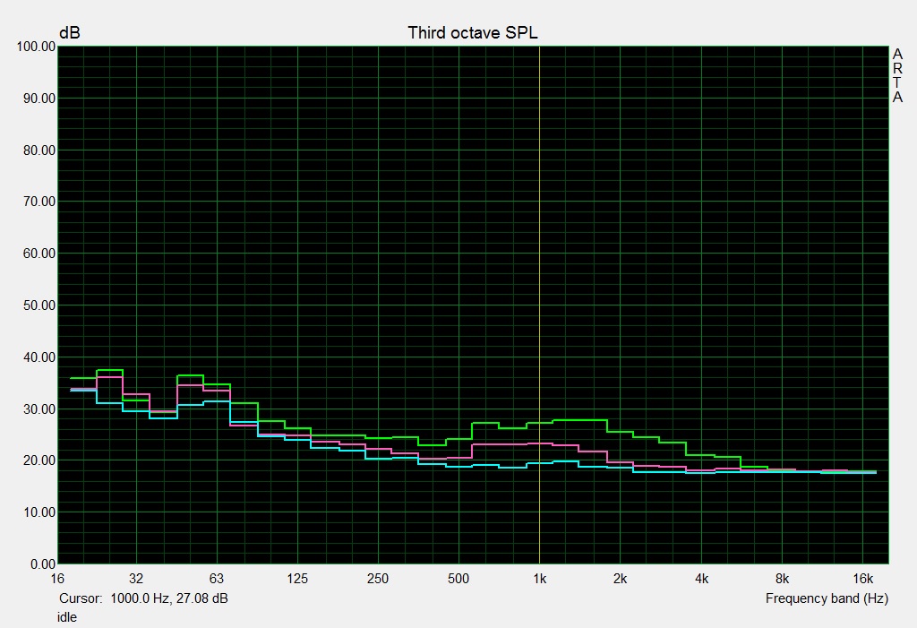 | Idle avg * (dB) | 33 | 31.2 5% | 33 -0% | 34 -3% | 31.2 5% | 32 3% |