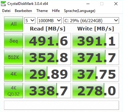 Die System Performance richtet sich nach anderen High-End-Notebooks auf Grundlage von Intels Skylake Plattform. Mit 5.955 Punkten sprintet das P57W beim PCMark 7 sogar leicht am Alienware 17 R3 mit GeForce GTX 980M und NVME-SSD vorbei. Auch das MSI GS70 6QE und das Gigabyte P37X v5 werden geschlagen. Das Acer Predator 17 und das Schenker XMG P706 können sich auf dem Papier minimal absetzen. In der Praxis reagieren alle Systeme sehr flott, so dass man kaum bis überhaupt keine Unterschiede merkt.