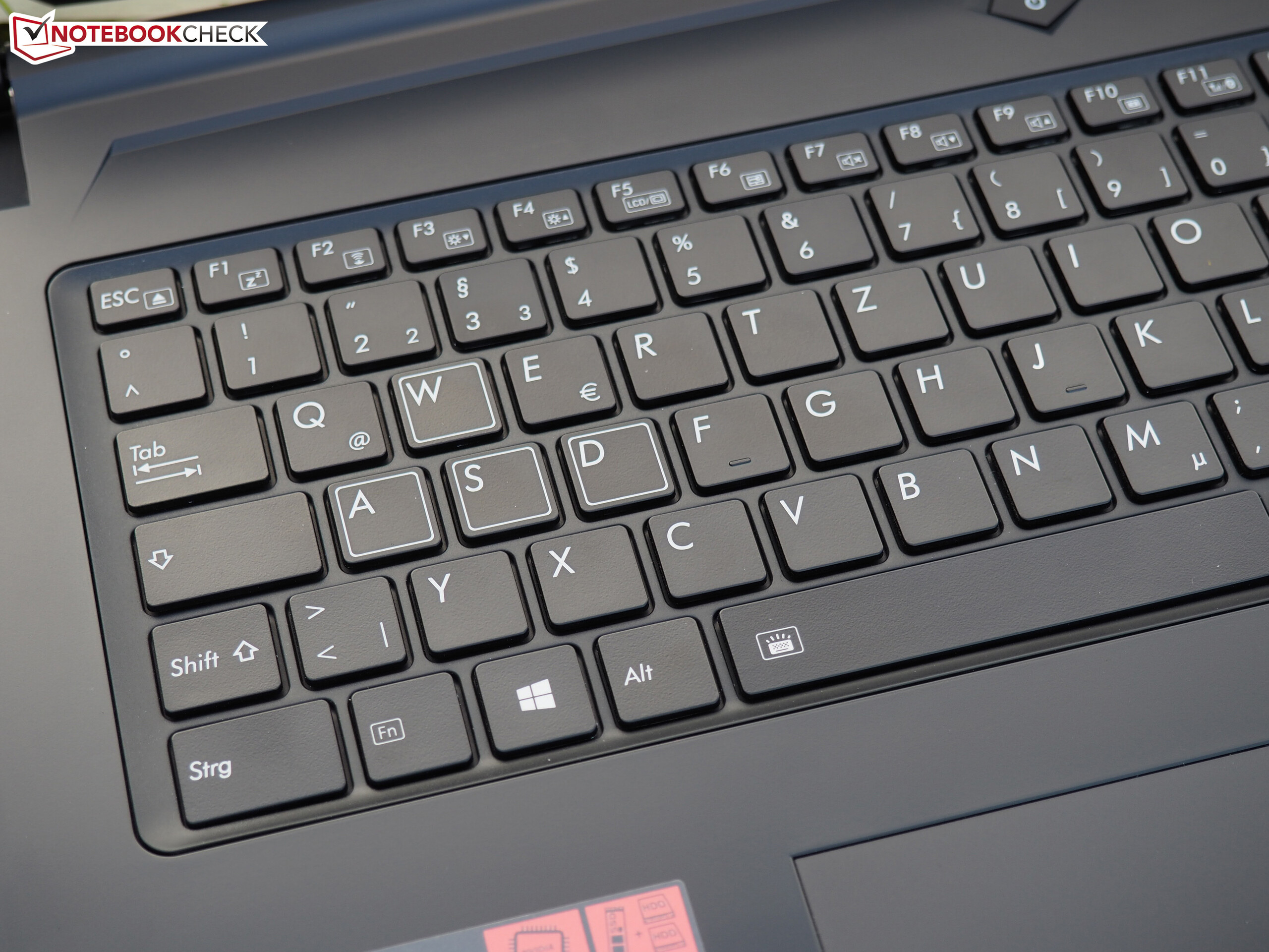 Das Keyboard macht über weite Strecken eine gute Figur. Zwar können es Druckpunkt, Anschlag und Akustik nicht ganz mit der Gaming-Elite aufnehmen (z. B. dem Alienware 17 R3), die meisten Käufer dürften mit der Vorstellung jedoch zufrieden sein. Dank dem Standard-Layout gewöhnt man sich bald ein, lediglich die kombiníerte Einfg-/Entf-Taste hat uns etwas gestört. Der kurze Hub ist ebenfalls Geschmackssache.