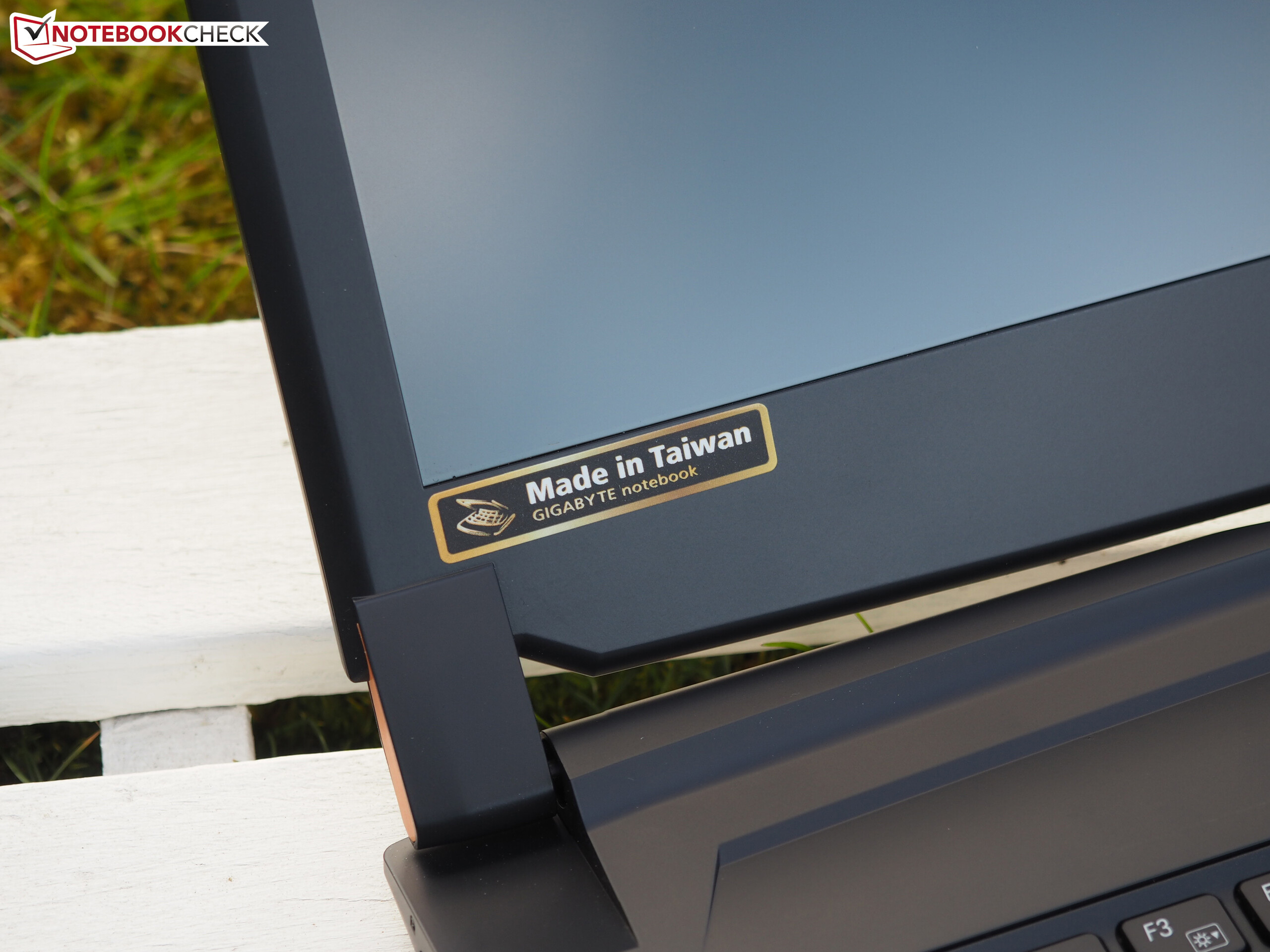Trotz der dünnen Bauart fällt die Stabilität der Baseunit verhältnismäßig gut aus. Der Deckel könnte hingegen fester sein. Mit den Händen lässt er sich deutlich durchdrücken bzw. verbiegen. Auch die Verarbeitung ist nicht ganz perfekt. Speziell der Übergang zwischen Displayrahmen und Cover war beim Testgerät leicht unsauber. Dafür schließt die Tastatur wesentlich genauer mit der Handballenauflage ab, als wir es in der Vergangenheit oft von Gigabyte erlebt haben.
