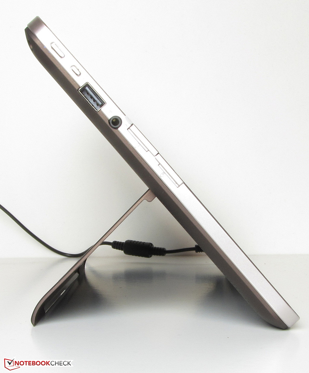 Bedacht werden sollte, dass alle Anschlüsse auf der Tablet-Einheit sitzen. Kabel hängen im Stand-Betrieb seitlich weg. Problematisch könnten etwa besonders dicke und schwere HDMI-Kabel werden, dessen Steckplatz dann im oberen bereich der Seitenkante liegt.