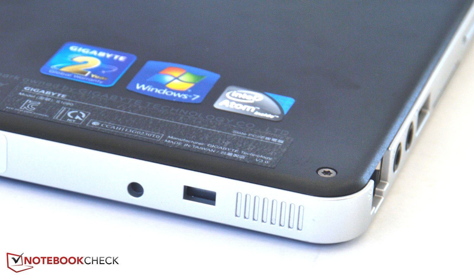 Das Gigabyte S1080 wirkt trotz der abgerundeten Ecken kantig und klobig. Dies wird noch unterstützt von 16 mm Höhe. Das ähnlich aufgebaute Dell Latitude ST-LST01 hat zwar am stärksten Punkt ebenfalls 16 mm Höhe, allerdings wird es zu den Rändern flacher und wirkt daher deutlich schlanker. Das Samsung Series 7 XE700T1A ist nicht nur deutlich leistungsstärker, es hat auch mit 13 mm Höhe ein attraktiveres Gehäuse.