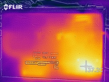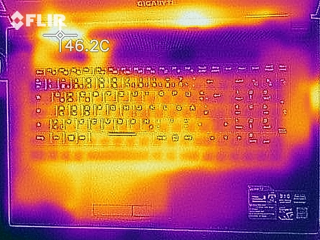 (+) Die Handballen und der Touchpad-Bereich erreichen maximal 34.6 °C und damit die typische Hauttemperatur und fühlen sich daher nicht heiß an.
