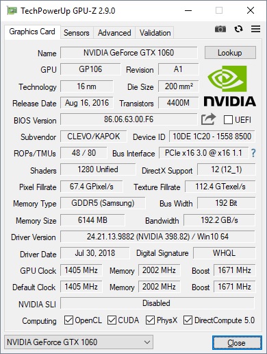 Test Gigabyte Sabre 17 (i7-8750H, GTX 1060) Laptop