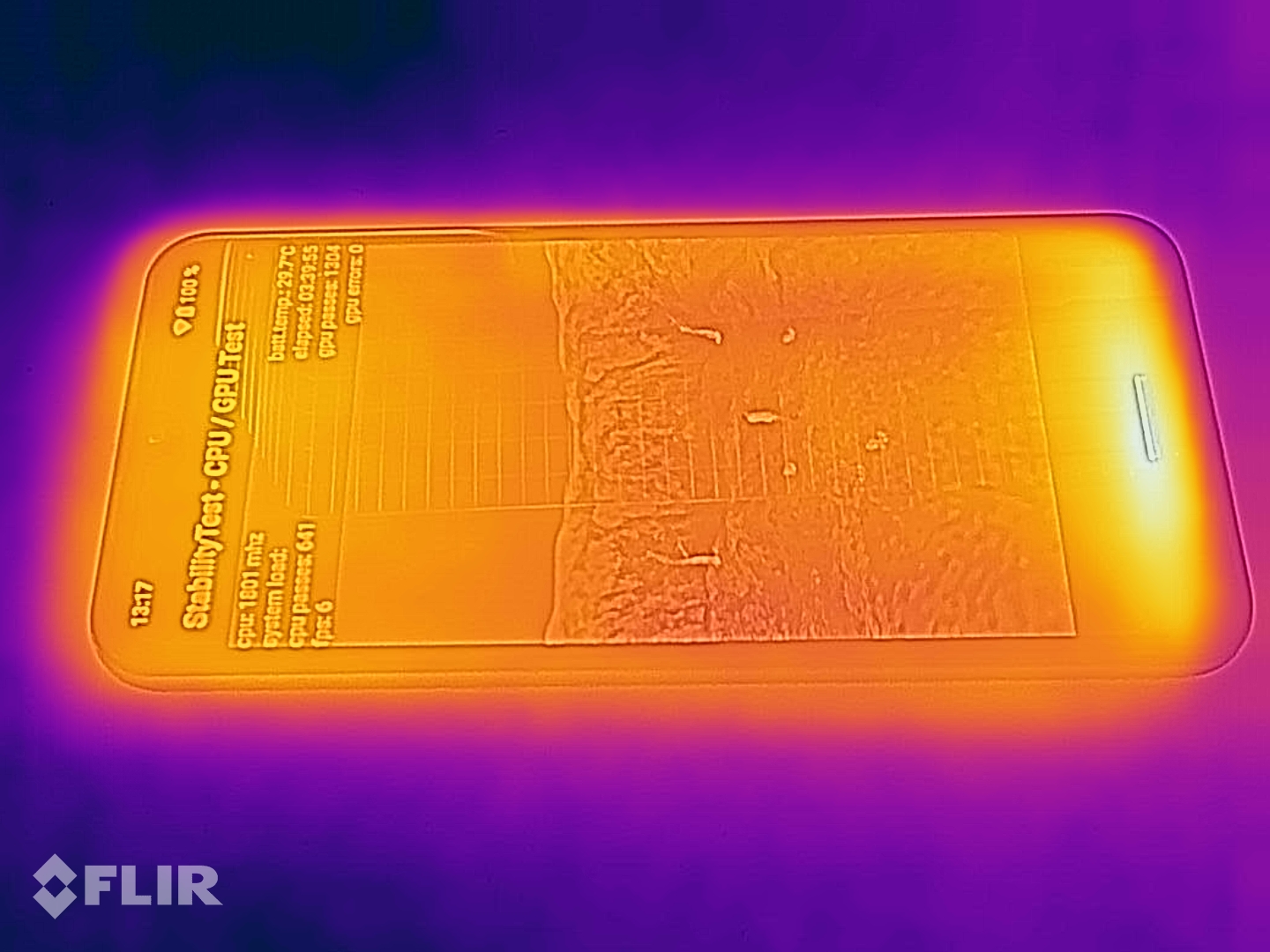 (+) Auf der Unterseite messen wir eine maximalen Wert von 28.3 °C (im Vergleich zum Durchschnitt von 34 °C).