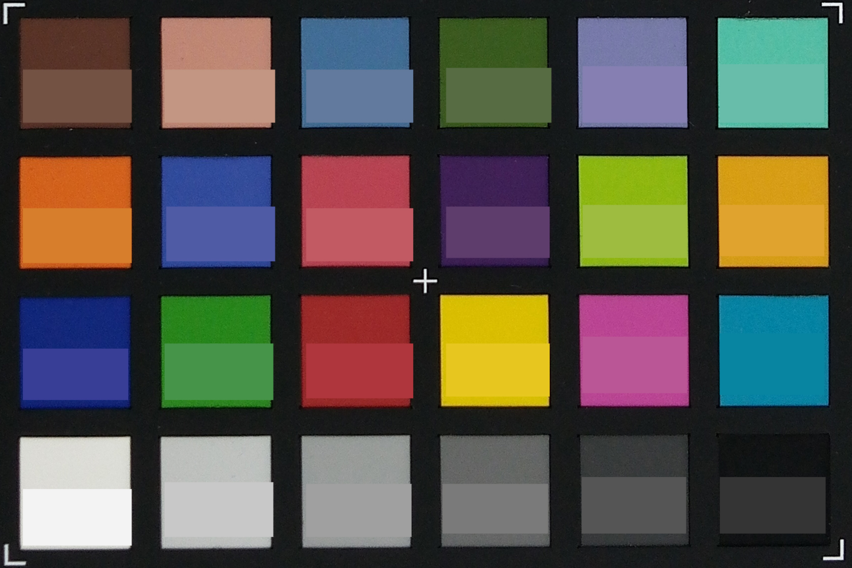 | Colorchecker dE 2000 max. * | 14.5 | 6.72 54% | 8.5 41% | 7.6 48% | 9.1 37% | 8.2 43% | 3.6 75% |
