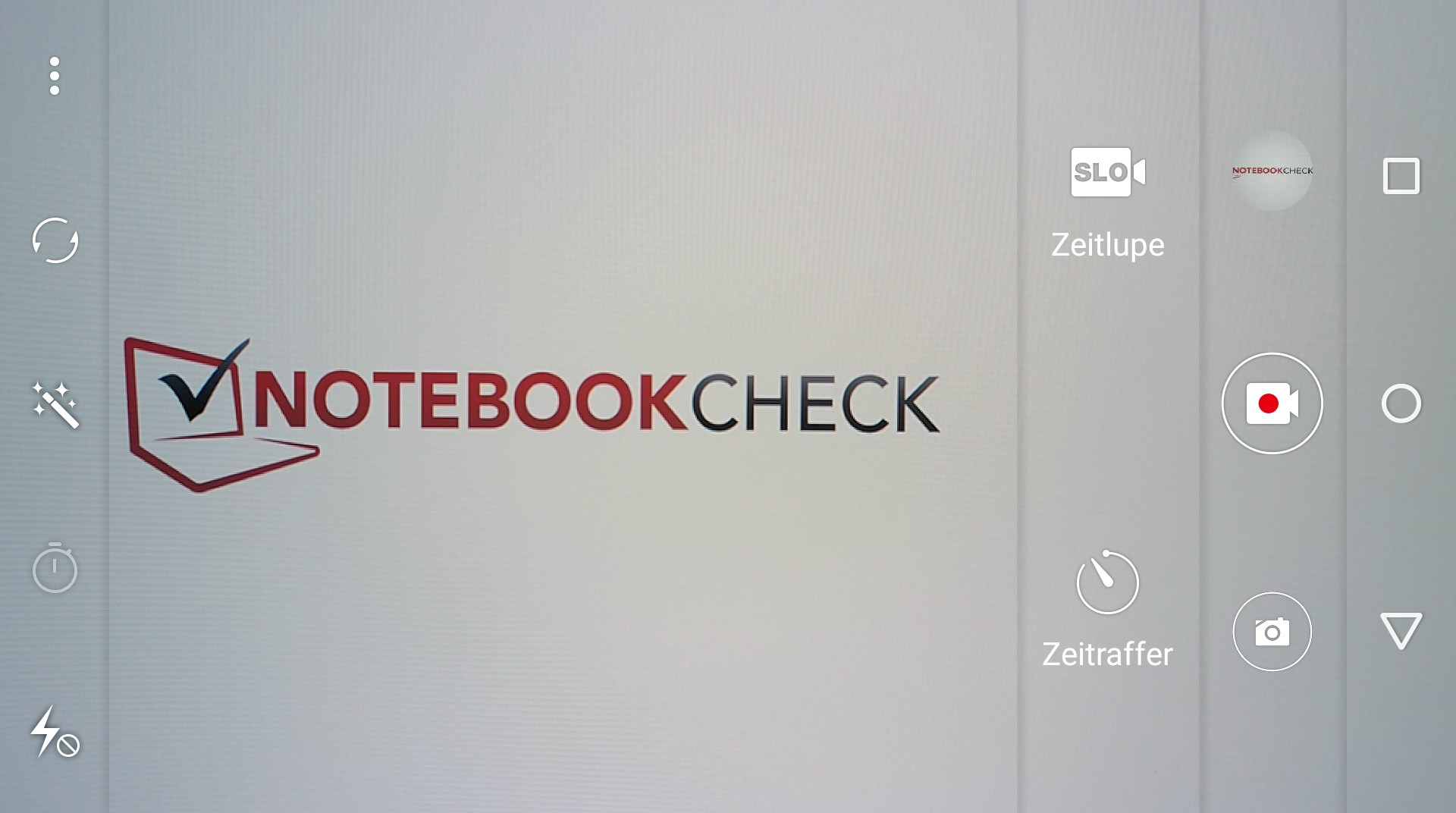 Die Kamera-App bietet Modi für Zeitraffer- sowie Zeitlupenaufnahmen, im Foto-Modus steht zudem eine Schwenkpanorama-Funktion zur Verfügung. Die Bedienung der App geht jedoch nicht immer spielerisch von der Hand: So ist beispielsweise der Auslöser relativ klein geraten und sehr nah bei der Home-Taste positioniert, sodass Fehleingaben leicht möglich sind. Auch ist es schade, dass aus dem Foto-Modus heraus kein Video aufgenommen werden kann – die eingeblendete Video-Taste startet keine Aufzeichnung, sondern wechselt lediglich in den Video-Modus. Des Weiteren störte uns, dass – abseits des Lautlos-Modus – der Bestätigungston beim Starten von Videoaufnahmen in der Tonspur zu hören war. Möchte man ein Panorama-Foto erstellen, wird die aktuelle Lautstärke-Einstellung sogar völlig ignoriert, was zu unliebsamen Überraschungen beim Fotografieren in ruhigen Umgebungen führen kann.