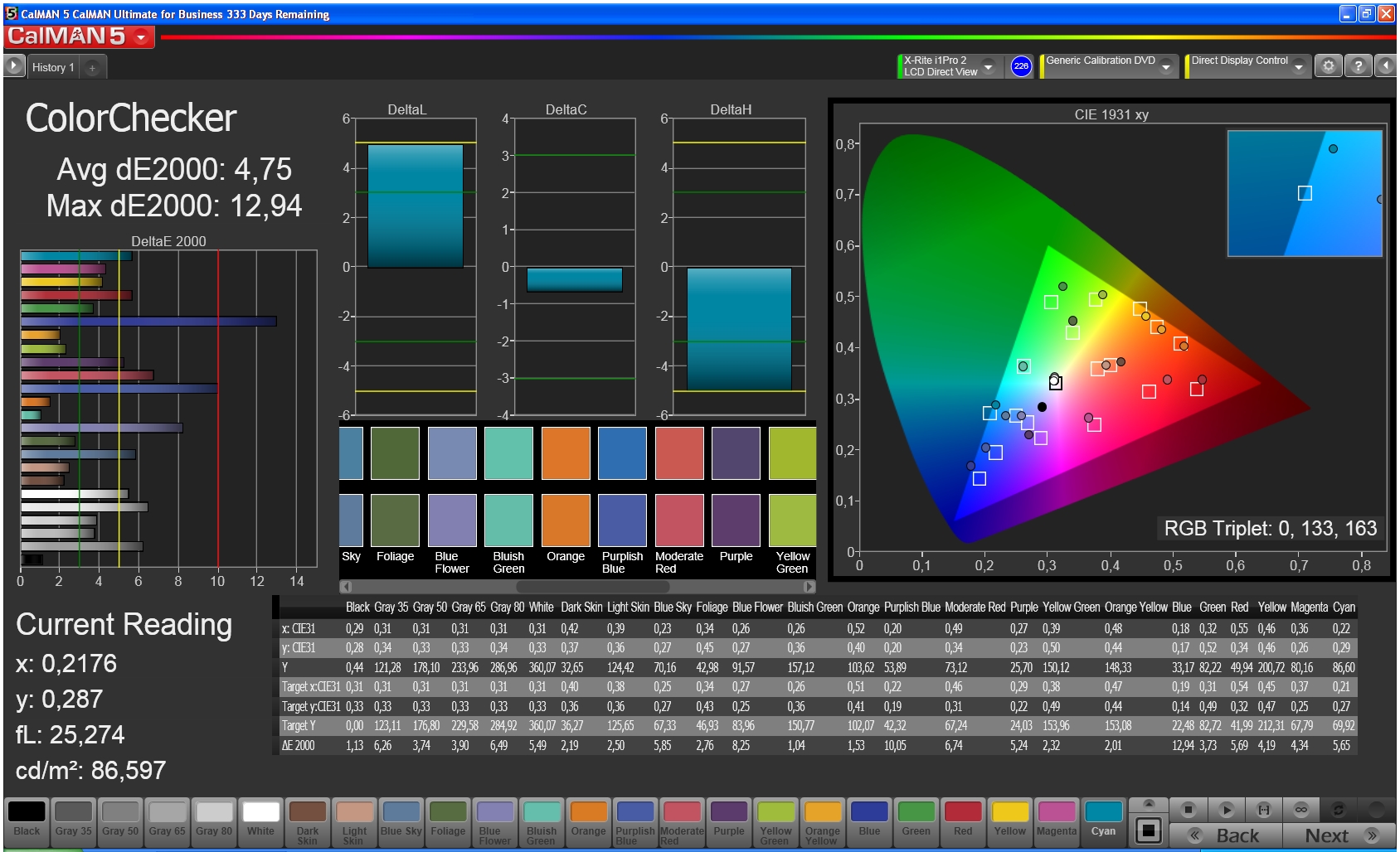 ΔE ColorChecker Calman: 4.75 | ∀{0.5-29.43 Ø4.78}