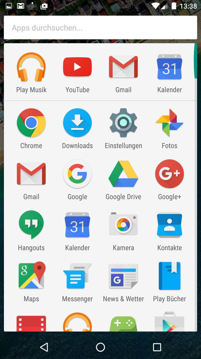 Optisch unterscheidet sich das neue Betriebssystem nur wenig von seinem Vorgänger Android 5.1.1. Der auffälligste Unterschied ist die nun vertikal statt horizontal scrollbare Liste der installierten Apps. Mit an Bord ist zudem die bereits vom Vorgänger Nexus 6 bekannte Ambient-Display-Funktion (auf Deutsch: „Inaktivitätsdisplay“), durch die via Bewegungssensor – z. B. beim Anheben des Smartphones – die aktuelle Uhrzeit sowie vorhandene Benachrichtigungen kurz auf dem Bildschirm erscheinen.