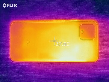 Die Oberflächentemperaturen verhalten sich im Test unauffällig, und auch die Kontaktmessung im Hotspot liegt mit 34,2 °C auf einem ähnlichen Niveau.