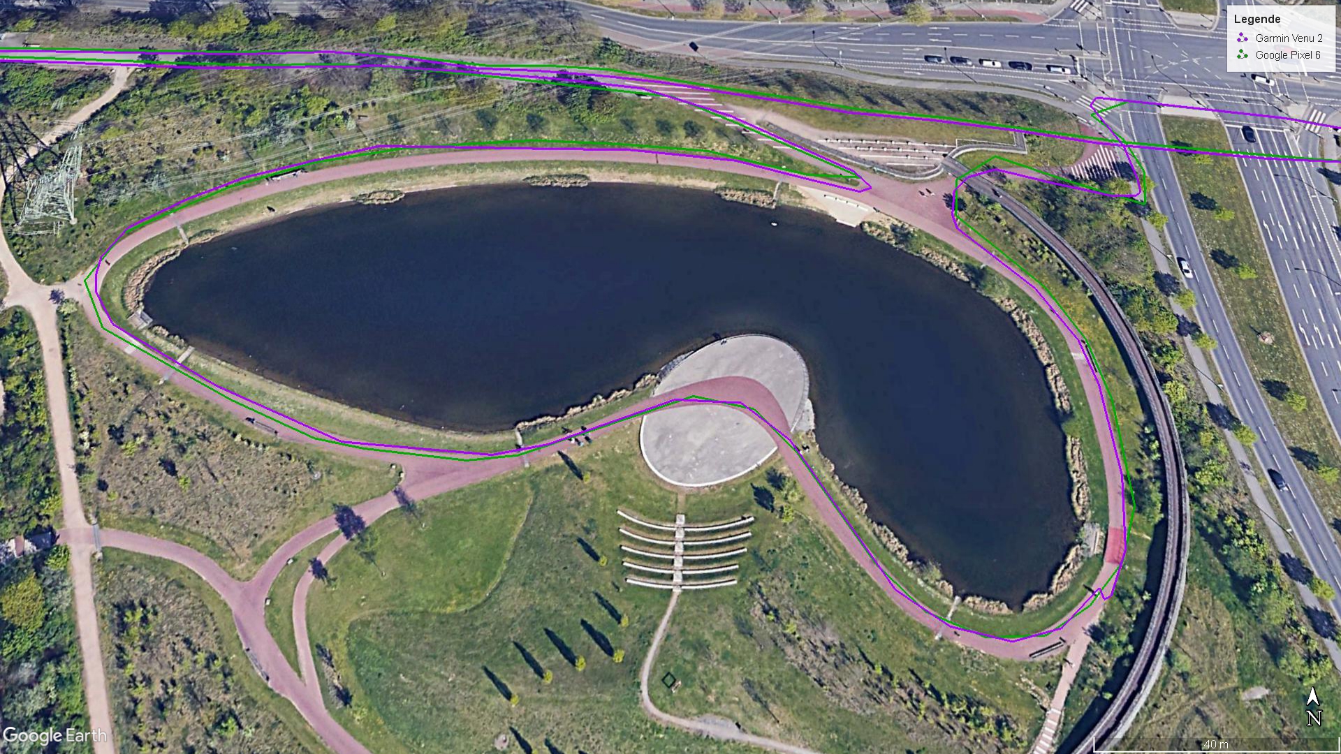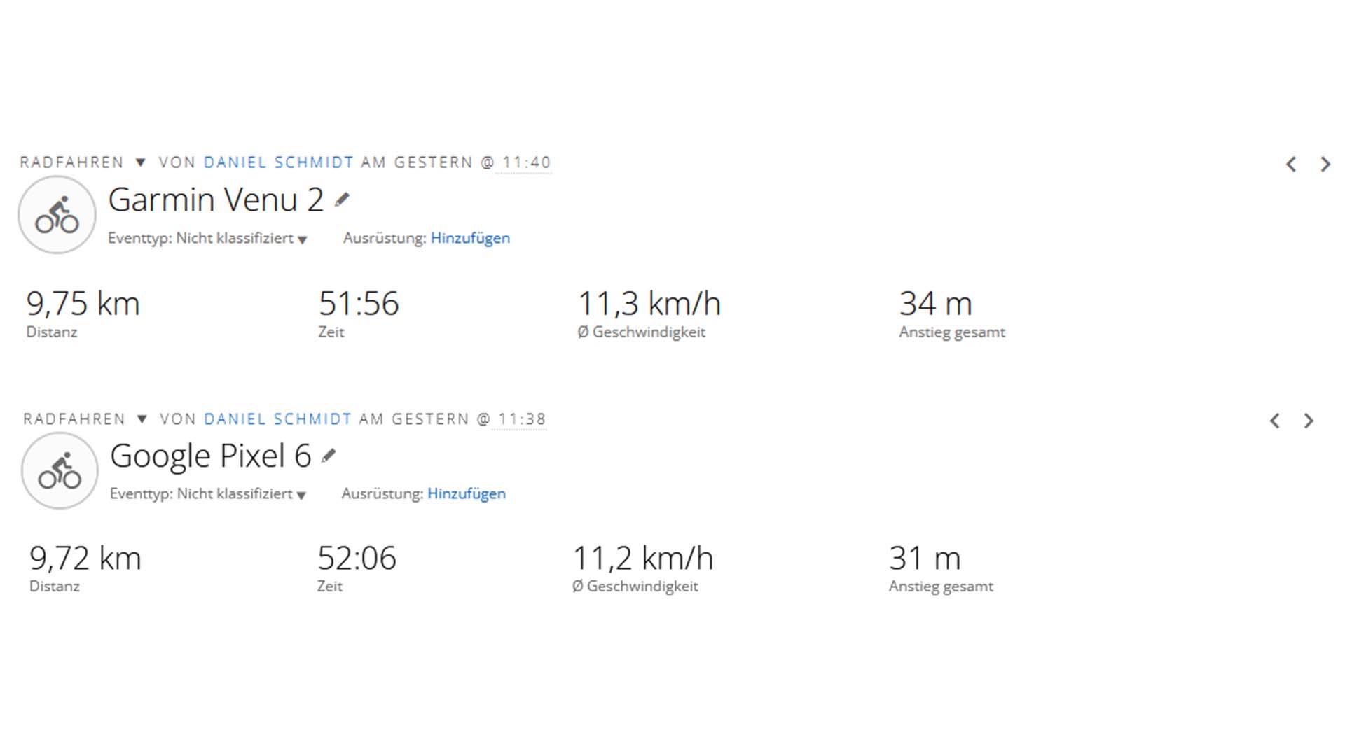 Auf unserer kleinen Rundfahrt mit dem Fahrrad muss sich das Google-Handy dem Vergleich mit der Garmin Venu 2 stellen. Die Smartwatch zeigt dabei eine wesentlich genauere Streckennachzeichnung, für Navigationsaufgaben reicht die gebotene Leistung des Smartphones jedoch aus.