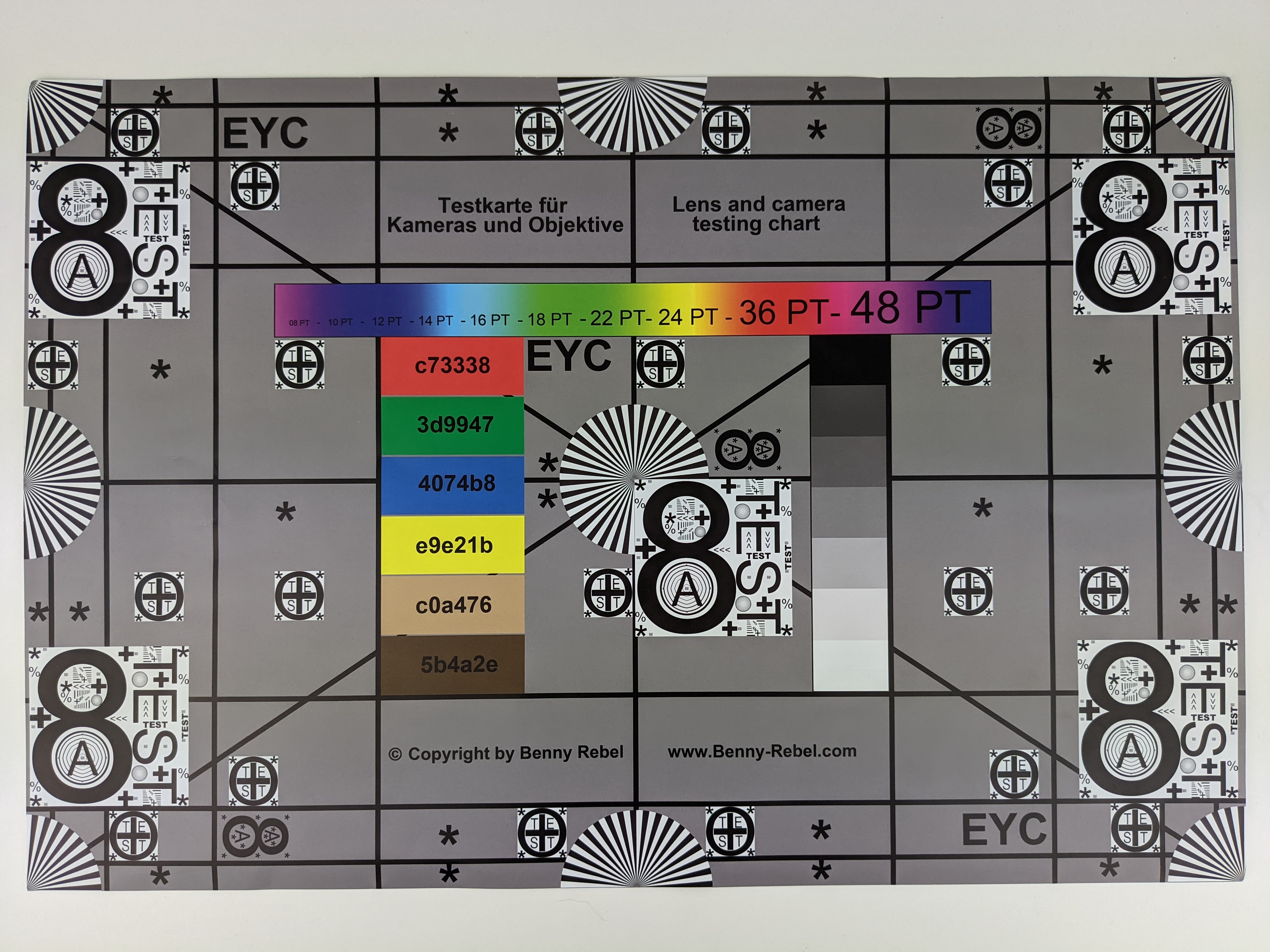 Auch bei 1 Lux Restlicht lassen sich die von der Farbkarte abfotografierten Farben problemlos den Originalfarben zuordnen. Der Testchart wird dann immer noch sehr gut sichtbar abgebildet, wenngleich die Bildschärfe dann etwas abnimmt.