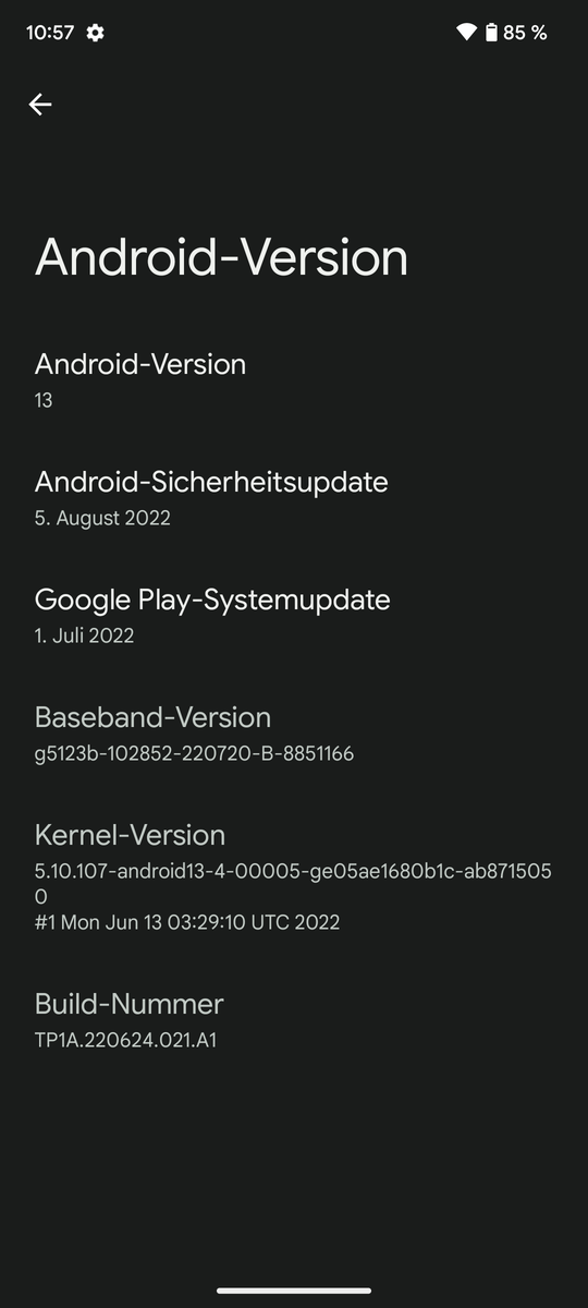 Android 13 hat das Pixel 6a mit dem September-Update erhalten. Das brachte auch die Android-Sicherheitsupdates auf den Stand vom 1. September – aktueller geht es zum Testzeitpunkt nicht.