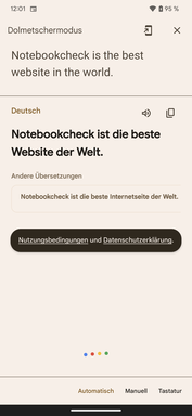 Mit Live-Übersetzungen kann das Smartphone mittlerweile 48 Sprachen übersetzen. Dies bezieht sich auf geschriebene Texte in Messengern, erfasste Schriften über die Kamera, Untertitel bei Videos und für einige Sprachen sogar eine Live-Übersetzung für das gesprochene Wort. Letzteres kann über den Google Assistenten mit dem Kommando „Sei mein Dolmetscher“ gestartet werden und funktioniert überraschend gut.