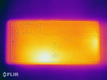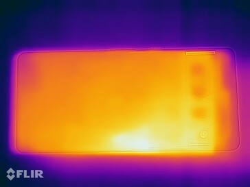 Die Oberflächentemperaturen des Google Pixel 7 Pro bleiben im Leerlauf deutlich unterhalb der 30-Grad-Marke. Unter andauernder Last sieht das schon anders aus und die Werte klettern in mehreren Bereichen über die 40 °C. Das ist zwar schon sehr warm, aber immer noch absolut unbedenklich.