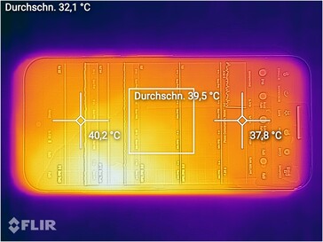 (±) Auf der Unterseite messen wir eine maximalen Wert von 42.1 °C (im Vergleich zum Durchschnitt von 34 °C).