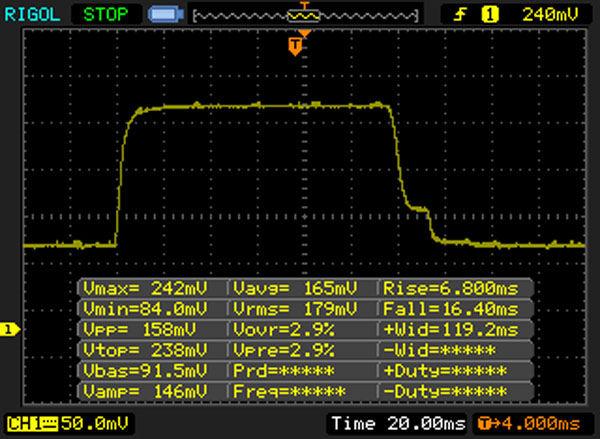 | 40 ms ... steigend ↗ und fallend ↘ kombiniert | ↗ 20 ms steigend | |