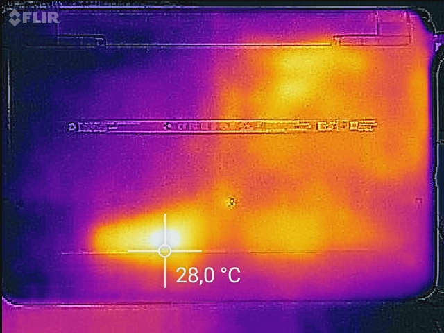(+) Die Handballen und der Touchpad-Bereich sind mit gemessenen 31.9 °C kühler als die typische Hauttemperatur und fühlen sich dadurch kühl an.