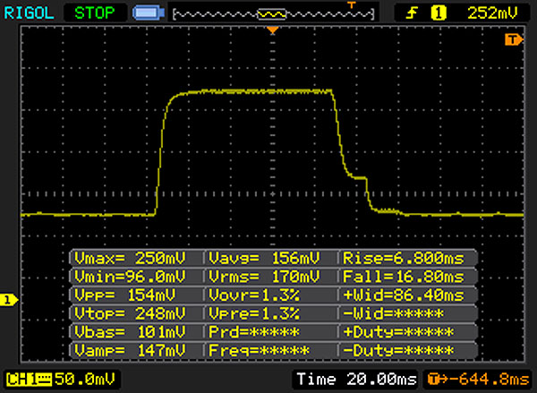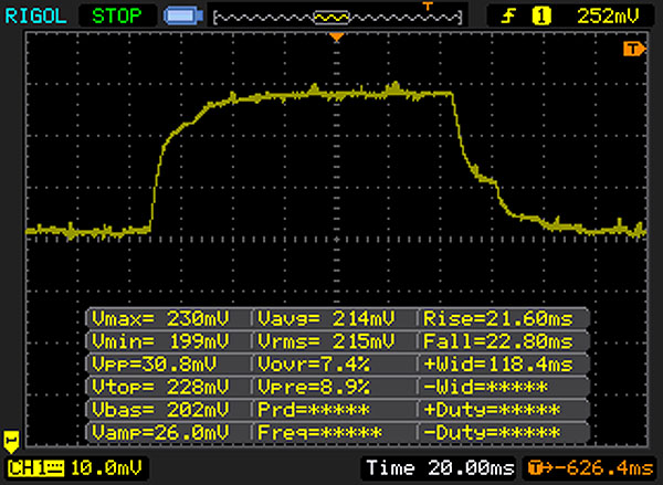 | 23 ms ... steigend ↗ und fallend ↘ kombiniert | ↗ 7 ms steigend | |