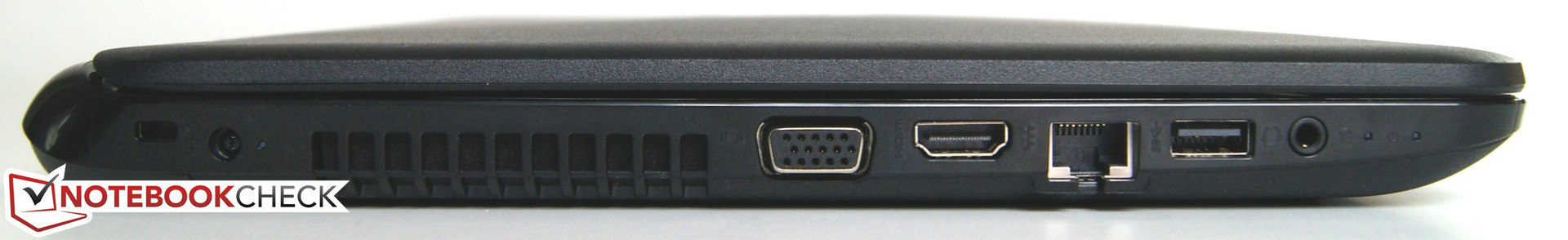 Das HP 250 G3 wird einheitlich aus einem matten Kunststoffgehäuse gefertigt. Die raue Oberfläche lässt keine unschönen Fingerabdrücke zu und liegt griffig in der Hand. Mit einer Höhe von 2,8 cm und einem Gewicht von 2.140 g bleibt das Gerät mit seinen 15,6 Zoll noch recht portabel. Unsere Vergleichsmodelle sind im Schnitt 100-200 g schwerer, allerdings 1-3 mm flacher. Die Gehäuseteile wurden sauber verbunden, leider ist der Rahmen am Ethernet-Port etwas scharfkantig, und der Displaydeckel kann stark eingedrückt werden. Bei den Schnittstellen werden drei USB-Ports zur Verfügung gestellt, wobei nur eine USB-3.0-Verbindung erlaubt wird. Diese ist nicht, wie bei vielen anderen Notebooks, durch die blaue Färbung zu erkennen (linke Seite). Alle Schnittstellen, bis auf den Netzanschluss und das Kensington Lock, sind im vorderen Teil des Notebooks angesiedelt. Vorteil dieser Bauart ist ein einfacher und schneller Zugriff. Der Nachteil ist, dass viele Geräte und Kabel das Arbeitsfeld stören können.