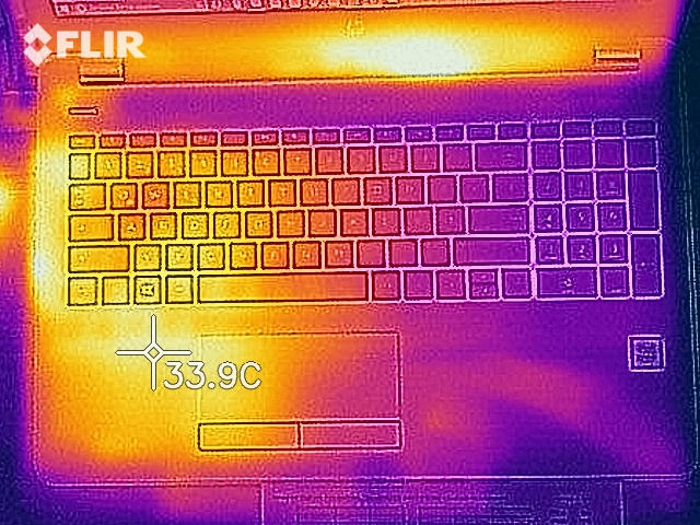 (+) Die Handballen und der Touchpad-Bereich sind mit gemessenen 28.3 °C kühler als die typische Hauttemperatur und fühlen sich dadurch kühl an.