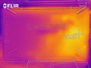 Von einer Erwärmung kann bei dem HP-250-Laptop nicht gesprochen werden. Während des Stresstests wird nur an zwei Messpunkten eine Temperatur von 30 °C erreicht. An allen anderen Punkten liegen die Werte darunter.