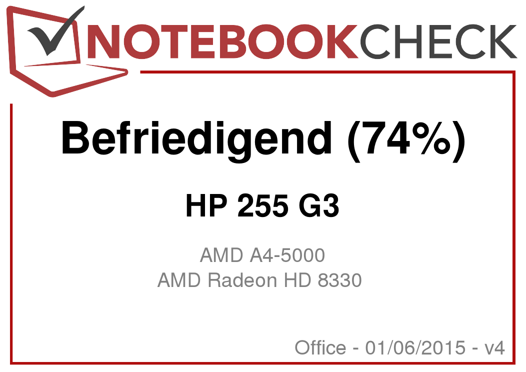 Das HP 255 G3 gehört zu den niedrigpreisigen Office-Notebooks im 15,6-Zoll-Format. Es bietet genügend Rechenleistung für Anwendungen aus den Bereichen Office und Internet. Unser Testgerät ist für etwa 300 Euro zu haben. Andere Ausstattungsvarianten sind verfügbar.
