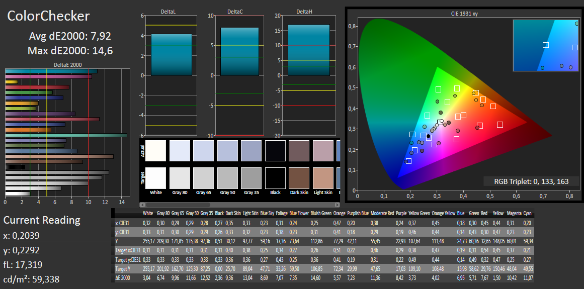 ΔE ColorChecker Calman: 7.92 | ∀{0.5-29.43 Ø4.78}