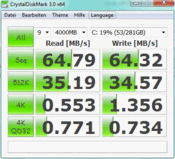 Das HP 620 hat eine 320 GB Festplatte von Seagate an Bord (ST9320325AS). Die 5.400 U/Min HDD ist sehr leise, selbst bei starker Aktivität der Leseköpfe. Die 320 GByte werden mit gemächlichen 55 MByte/s im Sequential Read ausgelesen (HD Tune). Ein unterdurchschnittlicher Wert, der aber durch eine relativ hohe Burst Rate aufgebessert wird. Die Burst Rate (Auslesen des HDD Cache in einer Sekunde) liegt bei: 78.2 MByte/s. Dies führt zu einem für eine 5.400 U/Min HDD passablen HDD-Score (PCMark Vantage Sub-Score) von 3.316 Punkten.