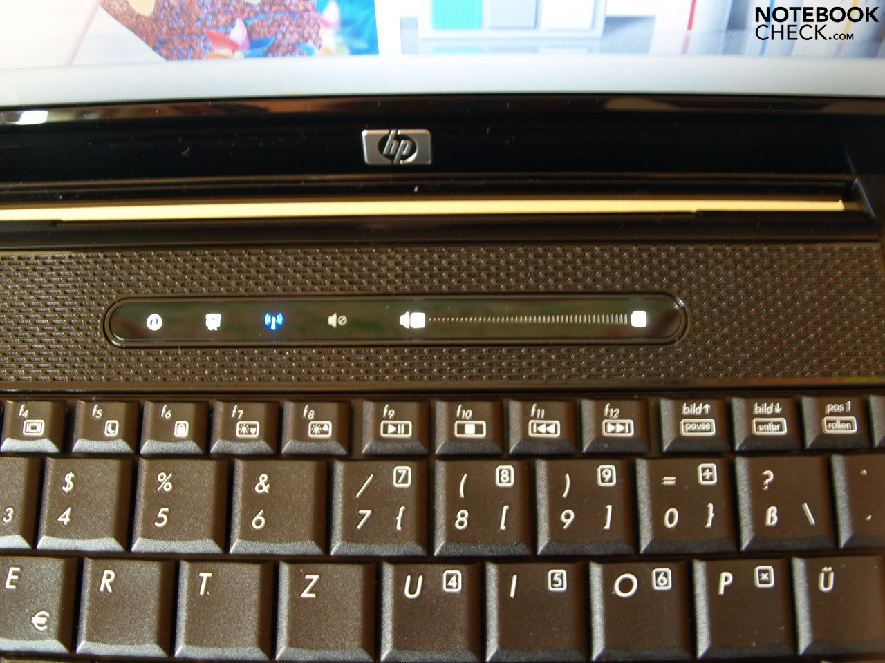 Zusatztasten werden in Form von berührungsempfindlichen Zonen auf einer Leiste oberhalb der Tastatur angeboten. Diese starten das HP Info Center, die Presentation Settings, welche den Start eines beliebigen vordefinierten Programms erlauben, kontrollieren die Wireless Module und bieten Stummschaltung und Lautstärkeregelung.