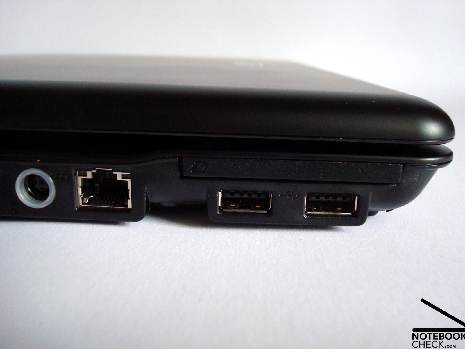 Weniger zufriedenstellend hat man bei HP auch die Positionierung der vorhandenen Anschlüsse gewählt. Während der mittlerweile kaum genutzte Modemanschluß weit hinten zu finden ist, hat man gerade die besonders oft genutzten USB-Ports, die zudem noch recht nah beieinander liegen, beidseitig weit vorne installiert, wo es folglich schnell zu Konflikten beim Arbeiten kommen kann. Zudem wird man auf der linken Seite bei Nutzung einer ExpressCard Erweiterung gänzlich auf die darunterliegenden USB-Ports verzichten müssen, da der Abstand in den meisten Fällen einfach zu gering ausfällt. Die Ortswahl für Cardreader und Audio gefällt hingegen und entspricht in der Regel dem praktischen Nutzungsverhalten. Sehr einnehmend stellt sich uns der üppig dimensionierte 8-Zellen-Akku dar, der dann auch die gesamte Rückseite für sich beansprucht und keine weiteren Anschlüsse an seiner Seite zulässt.