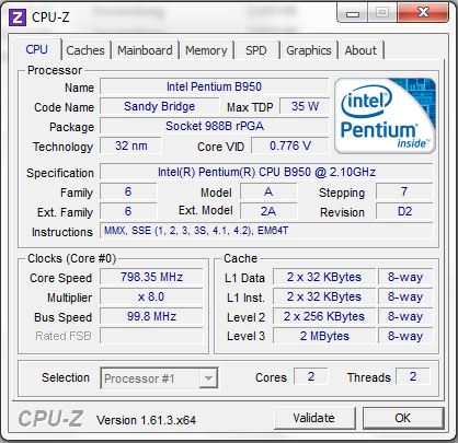 Unser Testgerät wird von einem Intel-Pentium-B950-Prozessor angetrieben. Die CPU besitzt zwei Kerne und entstammt der Sandy-Bridge-Prozessorgeneration. Der Prozessor arbeitet mit einer Geschwindigkeit von 2,1 GHz, verfügt jedoch nicht über einen Turbo. Während unseres Stresstests (Prime95 und Furmark arbeiten parallel) steht stets die volle CPU-Geschwindigkeit zur Verfügung. Wir konnten also kein Throttling beobachten. Auch die GPU läuft mit der vollen Geschwindigkeit (1100 MHz). Das Verhalten der CPU ändert sich im Akkubetrieb nicht. Die GPU hingegen läuft permanent mit 650 MHz.
