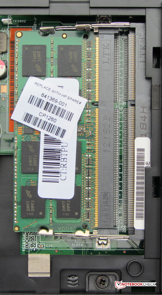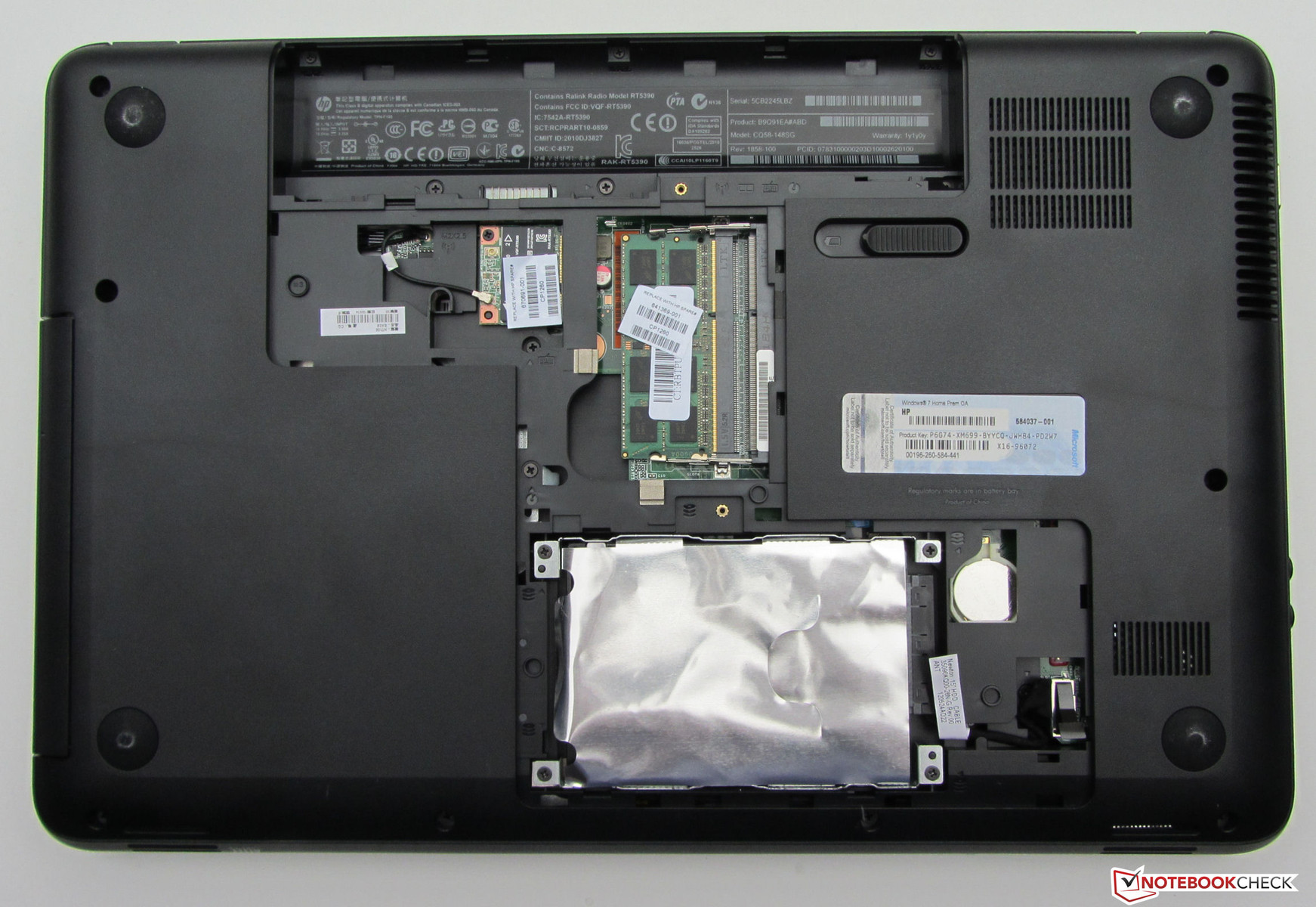 Auf der Unterseite des Gerätes befinden sich zwei Wartungsklappen, die Zugang zur Festplatte, dem Arbeitsspeicher, der BIOS-Batterie und dem WLAN-Modul bieten. Der Lüfter ist nicht erreichbar. Das Notebook verfügt über zwei Arbeitsspeicherbänke, wovon nur eine belegt ist (4 Gigabyte). Somit ließe sich das Gerät schnell und einfach auf 8 GB ausbauen. Damit wäre auch das Maximum an unterstütztem Arbeitsspeicher erreicht. Ebenso ließe sich die verbaute Festplatte ohne großen Aufwand gegen ein anderes Modell tauschen: Einfach Halteschraube lösen, Platte entnehmen, Festplattenkäfig an die neue Festplatte schrauben und Festplatte in das Notebook einsetzen. Fertig.