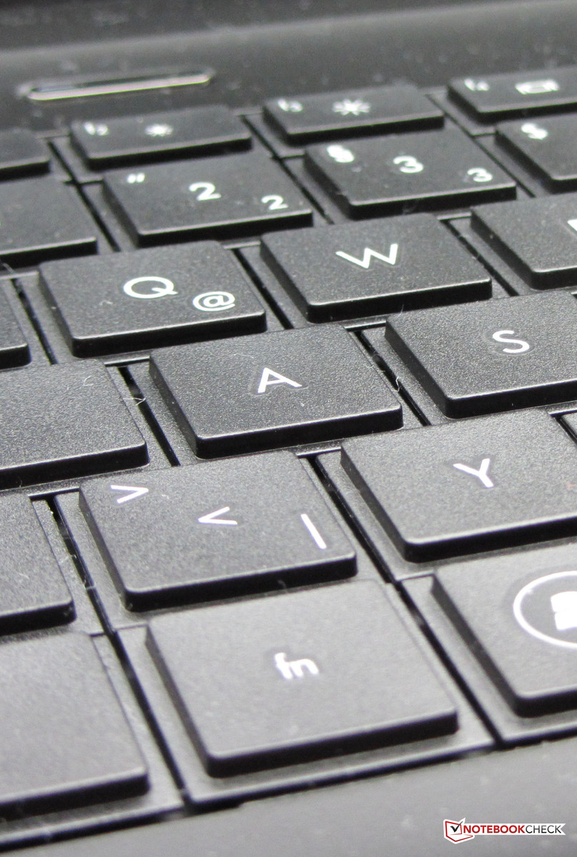 HP stattet das Presario CQ58-148SG mit einer herkömmlichen Notebooktastatur ohne Nummernblock aus. Die Tasten verfügen über einen deutlichen Druckpunkt und einen normalen Hub. Auf Druck gibt die Tastatur etwas nach - im oberen Bereich stärker als im unteren. Die in die WLAN- und die Caps Lock-Taste eingebauten LEDs erweisen sich als sehr nützlich. Sie zeigen an, ob Caps Lock bzw. die WLAN-Verbindung aktiviert bzw. deaktiviert sind.