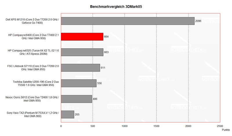 Die Leistung des nc6400 kann je nach gewählter Ausstattung von unauffällig bis hin zu sehenswerter Performance reichen. In allen Fällen aber bleibt das Notebook ein Office Gerät, dessen Schwächen vor allem im 3D Bereich zu finden sind.