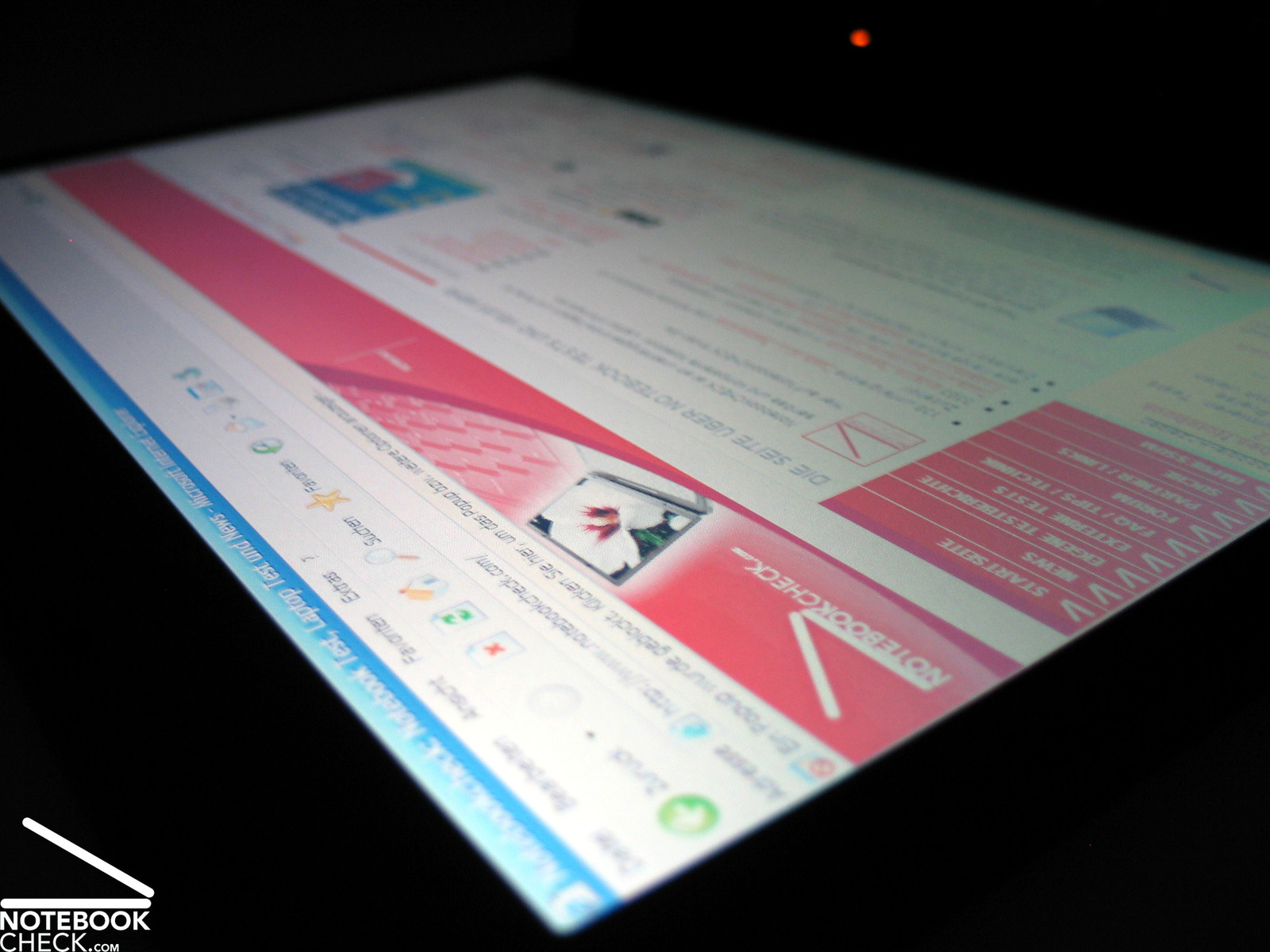 Das Display zeigt im horizontalen Bereich eine gute Blickwinkelstabilität. Im vertikalen Bereich kommt es außerhalb eines akzeptablen Arbeitsbereiches bei einer Betrachtungsposition von unten zum einen zu einer starken Verdunklung und einer Rotfärbung des Bildes, während man bei einer Betrachtungsposition von oben eine Verfärbung in Richtung türkis beobachten kann.