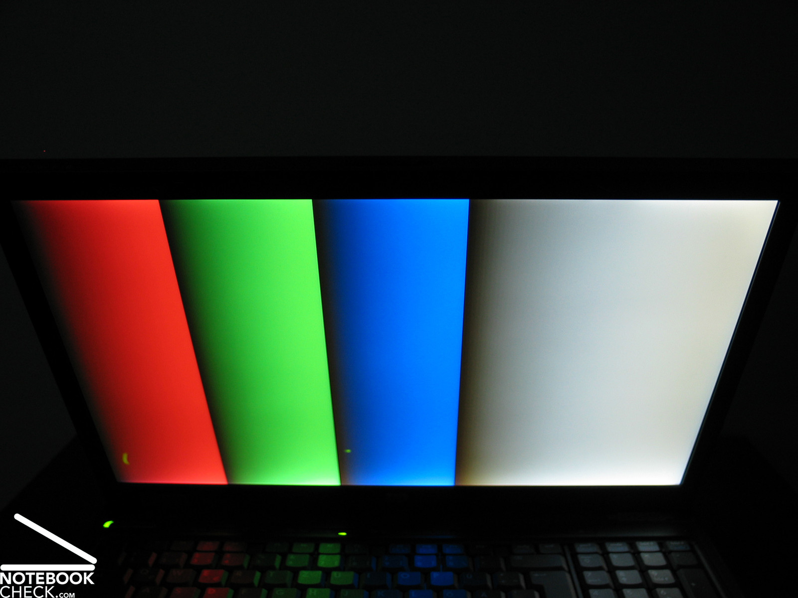 Wie bereits erwähnt konnte das Display im Gerät nicht wirklich überzeugen. Während die spiegelnde Oberfläche noch sehr von den Vorzügen des Benutzers und dem geplanten Einsatzgebiet abhängt, sind dann aber eine eher mäßige Helligkeit und eine schlechte Ausleuchtung klare Kontra Argumente. Auch die vertikale Blickwinkelstabilität ist eher als eingeschränkt zu bezeichnen. Wenn wir auch das alternativ erhältliche matte 1440x900 Pixel WXGA+ Display nicht getestet haben, sollte man es doch als mögliche Alternative ins Auge fassen.