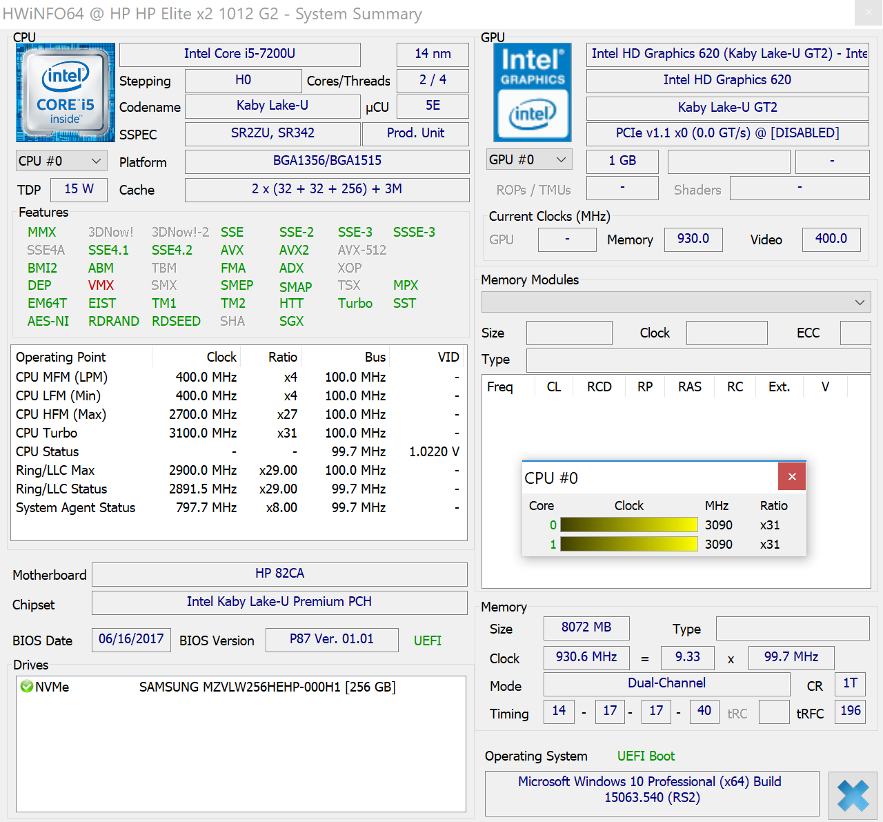 | HP Elite x2 1012 G2-1LV76EA HD Graphics 620, i5-7200U, Samsung PM961 MZVLW256HEHP | Microsoft Surface Pro (2017) i5 HD Graphics 620, i5-7300U, Samsung PM971 KUS030202M | Lenovo ThinkPad X1 Yoga 2017 20JES03T00 HD Graphics 620, i7-7600U, Samsung SSD PM961 1TB M.2 PCIe 3.0 x4 NVMe (MZVLW1T0) | Dell Latitude 12 5285 2-in-1 HD Graphics 620, i7-7600U, Samsung PM961 MZVLW256HEHP | Acer Switch 5 SW512-52-5819 HD Graphics 620, i7-7500U, Intel SSD 600p SSDPEKKW512G7 | Toshiba Portege X20W-D-10R HD Graphics 620, i7-7600U, Toshiba SG5 THNSNK512GVN8 | HP Elite x2 1012 G1 HD Graphics 515, 6Y54, Liteon L8H-256V2G | |