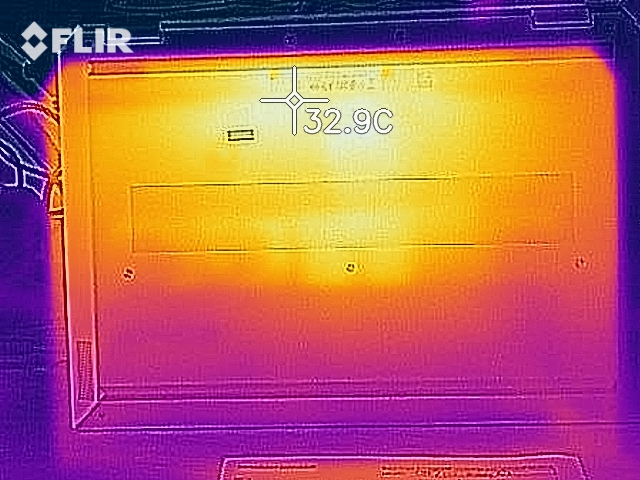 (+) Die Handballen und der Touchpad-Bereich sind mit gemessenen 29.3 °C kühler als die typische Hauttemperatur und fühlen sich dadurch kühl an.