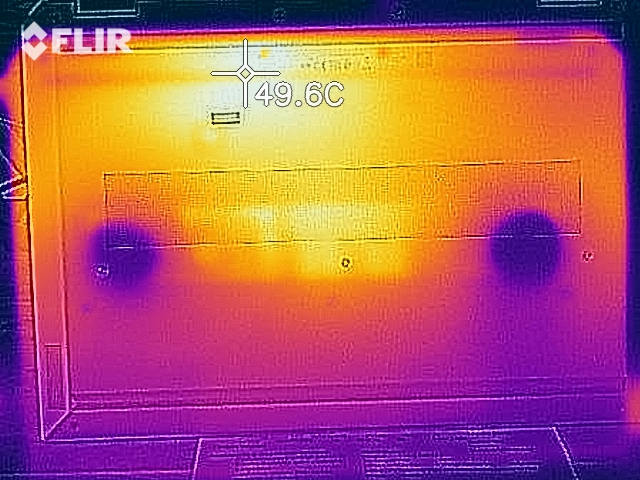 (-) Auf der Unterseite messen wir eine maximalen Wert von 46.4 °C (im Vergleich zum Durchschnitt von 39.1 °C).