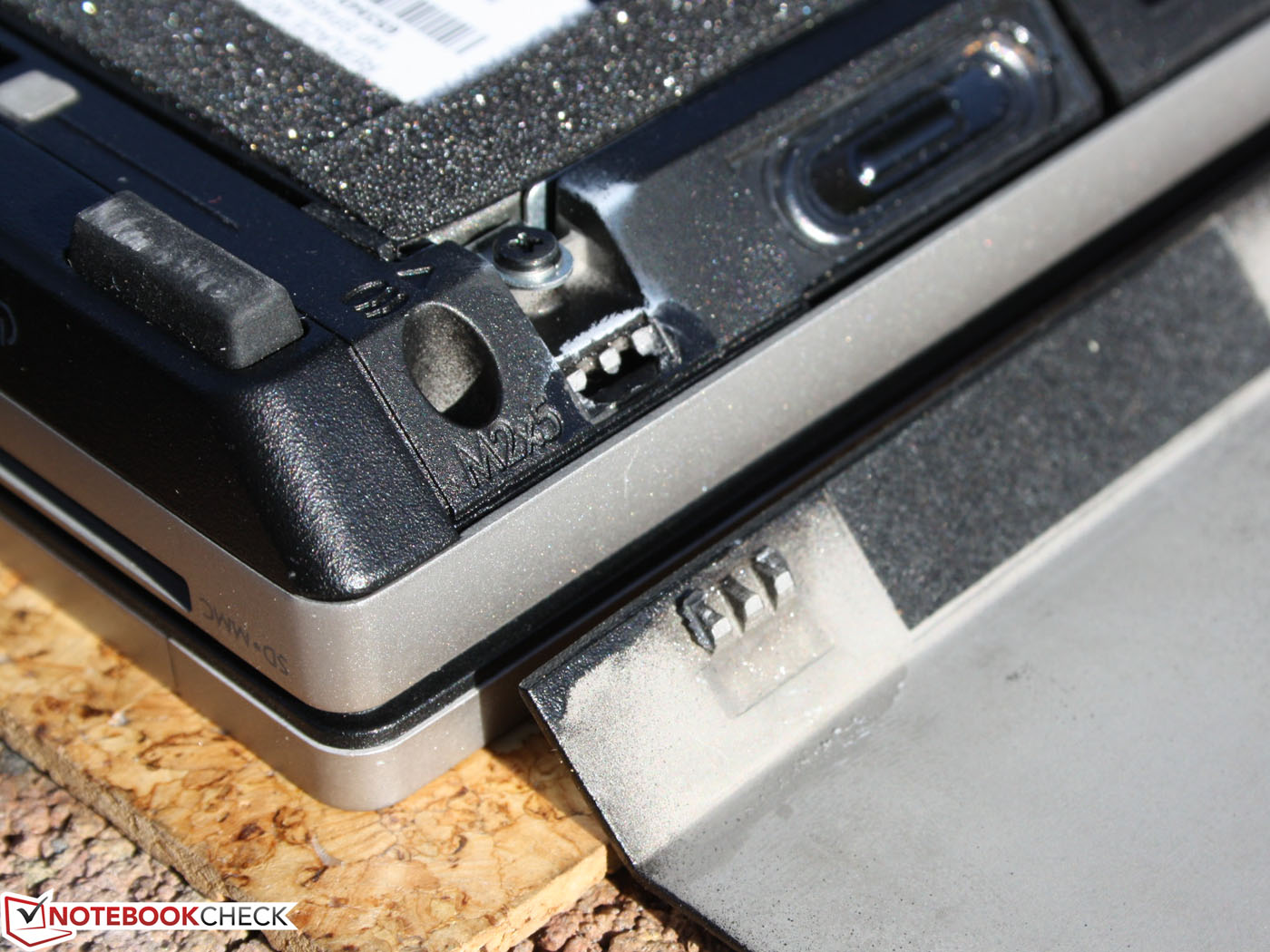 Das Wartungsthema ist, wie bei den EliteBooks üblich, über eine einzige große Klappe gelöst. Von der Arretierung per Schieber hat der Hersteller Abstand genommen, die Klappe ist verschraubt und vorn eingerastet. Bei unserem Testgerät waren alle fünf vorderen Haken (zum Einrasten) abgebrochen. Eine Schwachstelle in Serie hat die Magnesium-Bodenplatte aber nicht. Sie muss lediglich aufgeschoben, nicht aber aufgeklappt werden (!). Wir vermuten letzteres durch die Vortester.