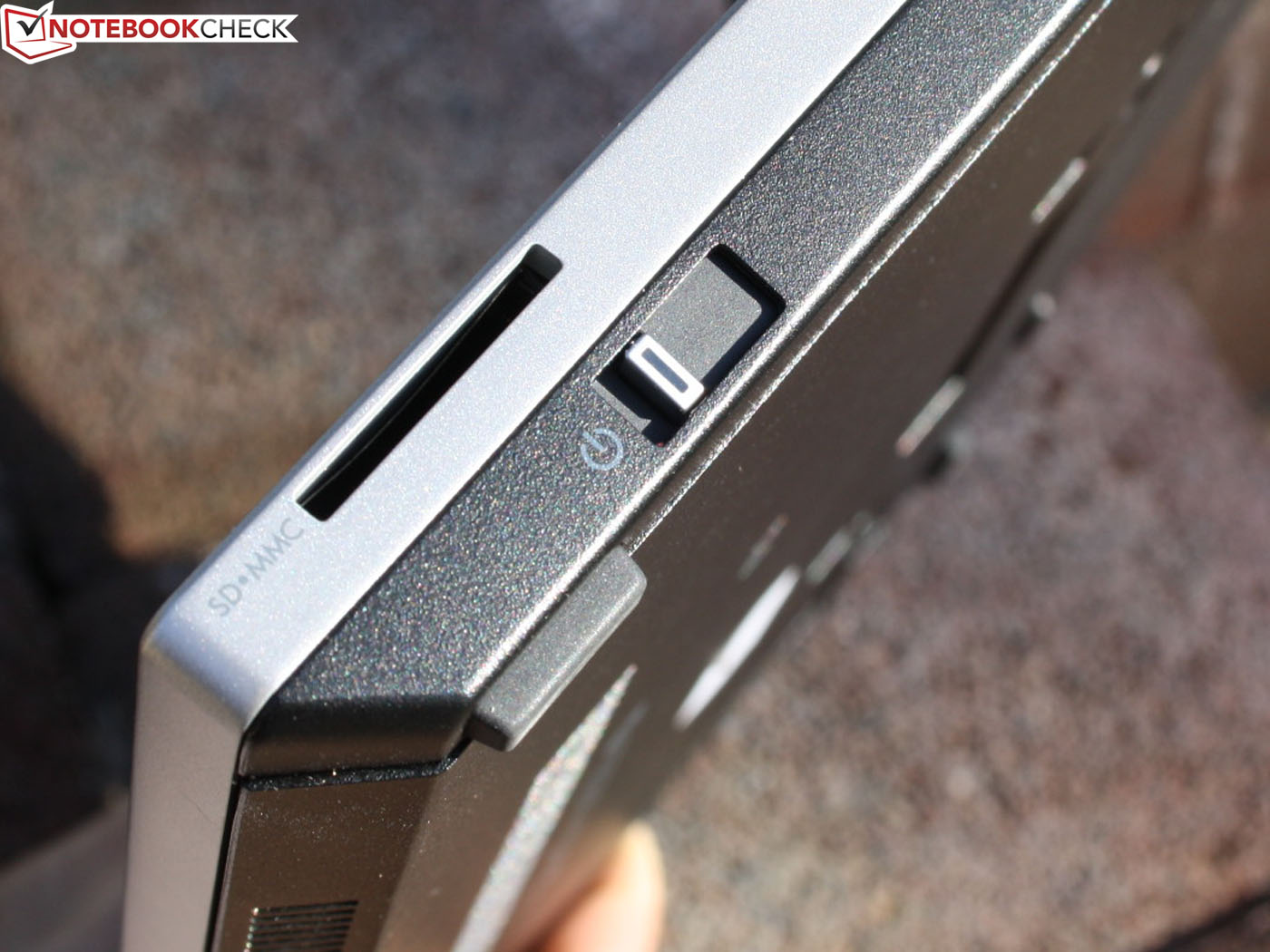 Die Base-Unit ist absolut verwindungsfrei: Ob Tasten, Handauflage oder Bodenplatte - hier dellt nichts ein. Die Gelenke aus Vollmetall halten den Deckel straff und lassen eine Öffnung auf genau 180 Grad zu. Weil der Akku nach hinten herausragt, sind die Ports nur rechts und links positioniert.