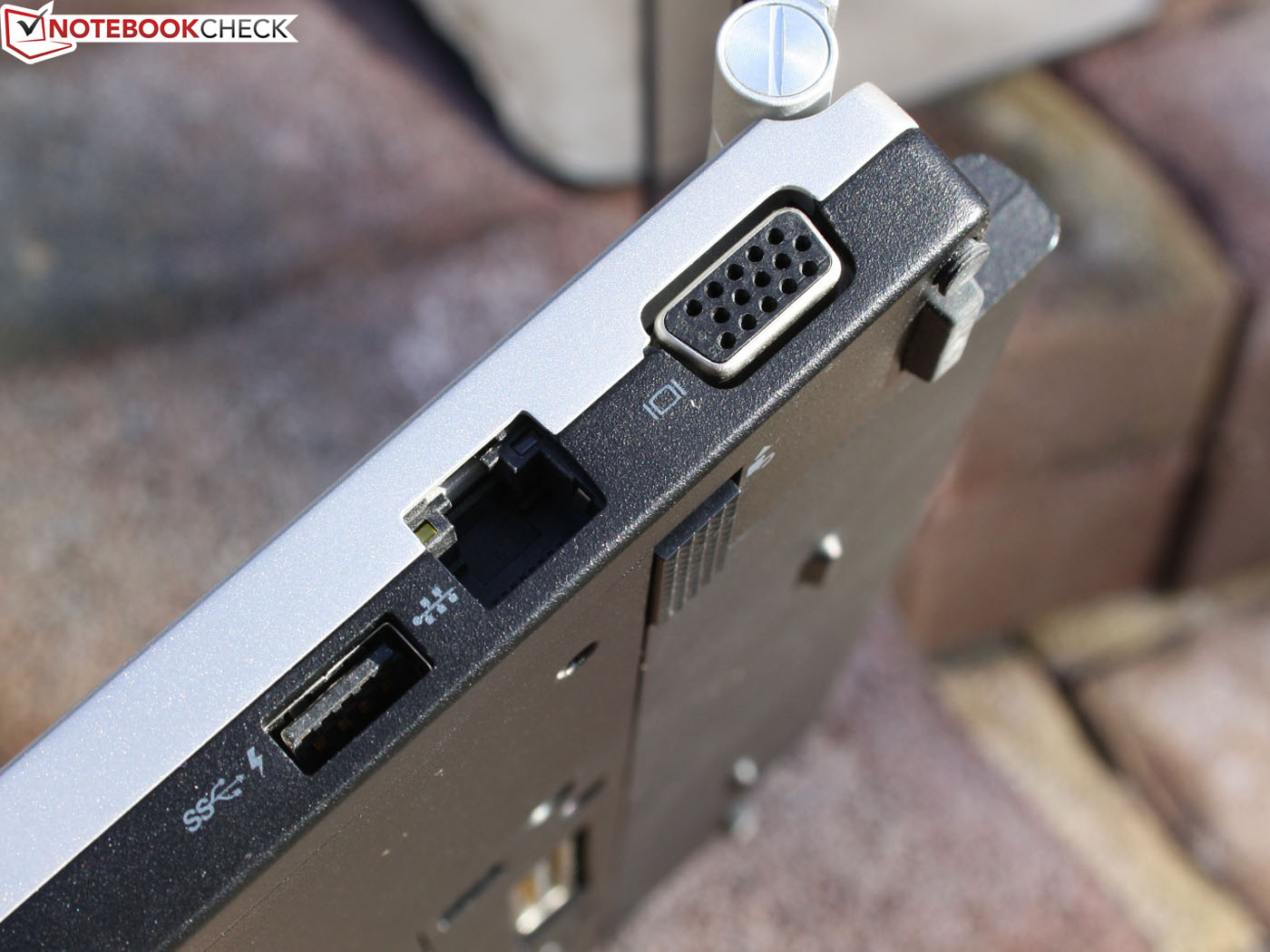 Während HP in seinen 12-Zoller EliteBook 2570p noch ein optisches Laufwerk hineinquetscht, lassen es die Ingenieure des Testgerätes zu Gunsten von Stabilität und Bauhöhe bleiben. HDMI gibt es nicht, dafür aber den im Business-Umfeld gefragten Display-Port. Ältere Monitore und Beamer können per VGA angedockt werden.