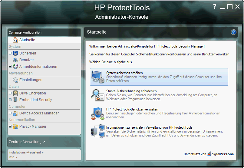 HP spendiert eine Reihe von Sicherheits-Tools und Geräten. Der Fingerabdruck-Leser, der Smart Card Reader und die spritzwassergeschützte Tastatur (Ablauf in Bodenplatte) sind bei EliteBooks Standard. Die HP ProtectTools (Gesamtpaket) bilden die Software-Seite. HP Disk Sanitizer, Laufwerkverschlüsselung, Credential Manager (Passwörter) und File Sanitizer (rückstandsfreies Löschen) sind weitere Stichwörter.