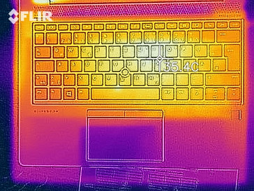 In unserem Test übersteigen die Oberflächentemperaturen des EliteBooks 735 G5 im Leerlauf nur knapp die 30-Grad-Marke. Der HP-Laptop bleibt im Office-Betrieb angenehm kühl und erwärmt sich auch unter Last nicht übermäßig. Mit Temperaturen um die 36 °C ist das Business-Notebook dabei immer noch gut zu verwenden.